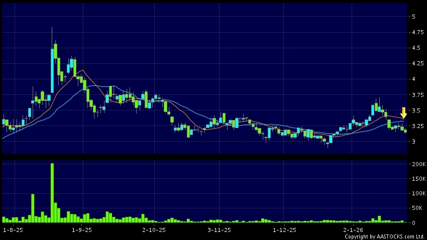免責聲明:以上金融市場數據、報價、圖表 及/或各種技術分析指標乃根據公開資料分析和演釋自動生成的,僅作參考使用。此類自動生成的內容並不代表AASTOCKS.com Limited的立場。AASTOCKS.com Limited並不保證其準確性、完整性、實時性或者正確性。閣下應諮詢獨立專業意見,以核實定價資料或獲取更詳細的市場信息及須為所有跟隨此類自動生成的內容執行的交易或使用該內容負責。