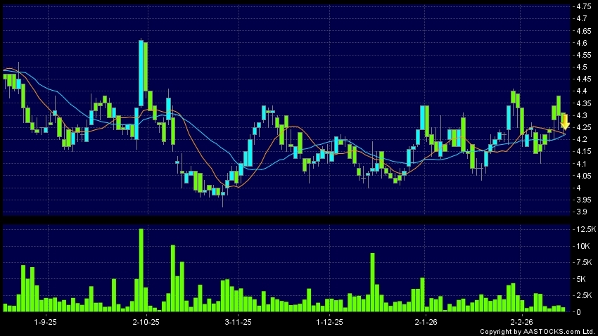 免責聲明:以上金融市場數據、報價、圖表 及/或各種技術分析指標乃根據公開資料分析和演釋自動生成的,僅作參考使用。此類自動生成的內容並不代表AASTOCKS.com Limited的立場。AASTOCKS.com Limited並不保證其準確性、完整性、實時性或者正確性。閣下應諮詢獨立專業意見,以核實定價資料或獲取更詳細的市場信息及須為所有跟隨此類自動生成的內容執行的交易或使用該內容負責。