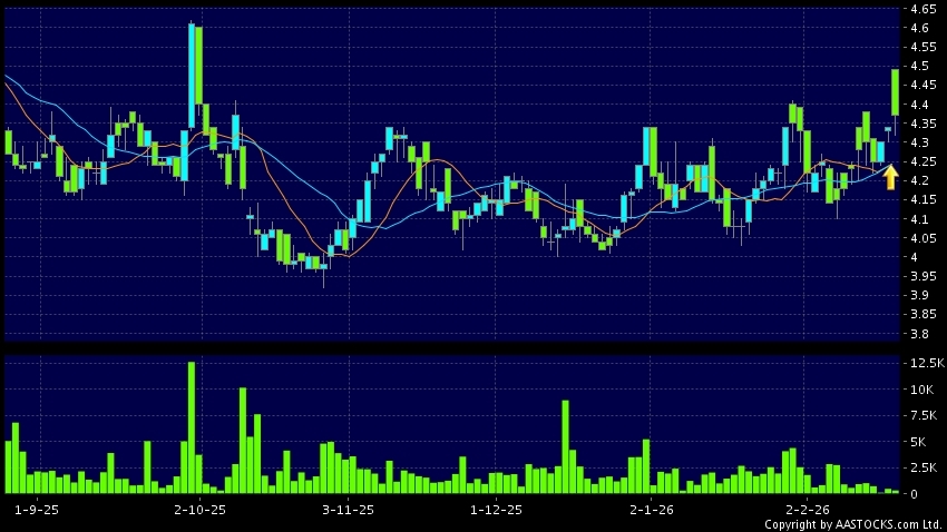 免責聲明:以上金融市場數據、報價、圖表 及/或各種技術分析指標乃根據公開資料分析和演釋自動生成的,僅作參考使用。此類自動生成的內容並不代表AASTOCKS.com Limited的立場。AASTOCKS.com Limited並不保證其準確性、完整性、實時性或者正確性。閣下應諮詢獨立專業意見,以核實定價資料或獲取更詳細的市場信息及須為所有跟隨此類自動生成的內容執行的交易或使用該內容負責。
