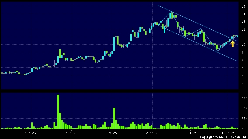 區域突破指股價在過去的一段時間只在一個範圍在內活動,然後股價上升作出突破,升穿區域的頂部,技術走勢向好。(港股報價延遲最少十五分鐘。沽空資料截至 2025-12-08 16:25。)