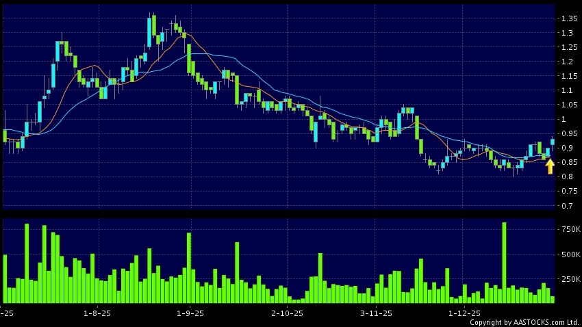 大麥娛樂(01060.HK) +0.050 (+5.556%) 沽空 $4.15千萬; 比率 23.143% 10天移動平均線升穿20天移動平均線,出現黃金交叉。現價報0.930,上升3.333%,成交量7.88千萬股,成交額7.30千萬。