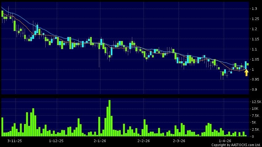 好孩子國際(01086.HK) -0.010 (-1.053%) 10天移動平均線升穿20天移動平均線,出現黃金交叉。現價報1.020,下跌1.923%,成交量1.70萬股,成交額1.74萬。