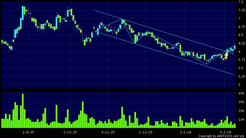區域突破指股價在過去的一段時間只在一個範圍在內活動,然後股價上升作出突破,升穿區域的頂部,技術走勢向好。(港股報價延遲最少十五分鐘。沽空資料截至 2026-02-09 16:25。)