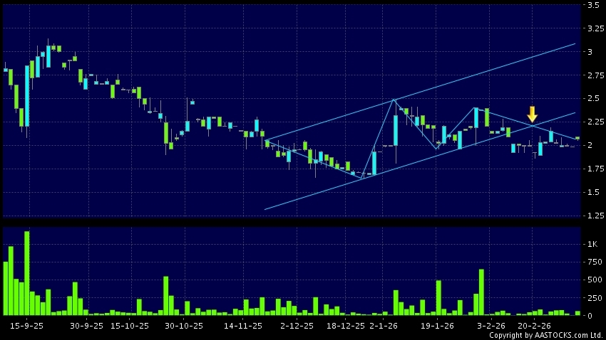 區域突破指股價在過去的一段時間只在一個範圍在內活動,然後股價下跌作出突破,跌穿區域的底部,技術走勢偏軟。(港股報價延遲最少十五分鐘。)