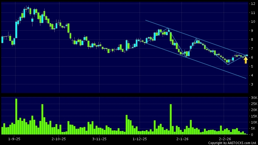 區域突破指股價在過去的一段時間只在一個範圍在內活動,然後股價上升作出突破,升穿區域的頂部,技術走勢向好。(港股報價延遲最少十五分鐘。沽空資料截至 2026-03-03 16:25。)