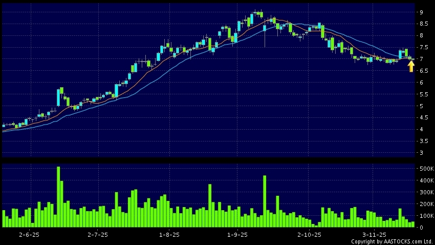 免責聲明:以上金融市場數據、報價、圖表 及/或各種技術分析指標乃根據公開資料分析和演釋自動生成的,僅作參考使用。此類自動生成的內容並不代表AASTOCKS.com Limited的立場。AASTOCKS.com Limited並不保證其準確性、完整性、實時性或者正確性。閣下應諮詢獨立專業意見,以核實定價資料或獲取更詳細的市場信息及須為所有跟隨此類自動生成的內容執行的交易或使用該內容負責。