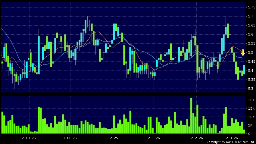 死亡交叉是一個利淡信號,指股價的短期移動平均線跌穿長期移動平均線,例如50天線跌穿250天線,在圖表上構成交叉的形狀。股價通常會下跌形成一個下降趨勢,技術走勢偏軟。(港股報價延遲最少十五分鐘。沽空資料截至 2026-03-12 16:25。)