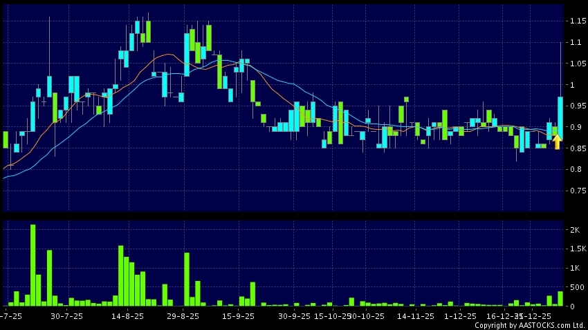 四威科技(01202.HK) +0.040 (+3.810%) 10天移動平均線升穿20天移動平均線,出現黃金交叉。現價報0.970,上升10.227%,成交量38.80萬股,成交額37.45萬。
