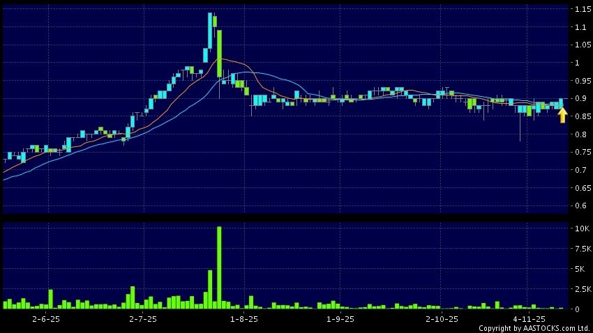 廣南(集團)(01203.HK) -0.020 (-2.299%) 10天移動平均線升穿20天移動平均線,出現黃金交叉。現價報0.900,無升跌,成交量0.00股,成交額0.00。