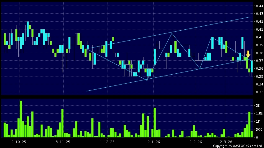 免責聲明:以上金融市場數據、報價、圖表 及/或各種技術分析指標乃根據公開資料分析和演釋自動生成的,僅作參考使用。此類自動生成的內容並不代表AASTOCKS.com Limited的立場。AASTOCKS.com Limited並不保證其準確性、完整性、實時性或者正確性。閣下應諮詢獨立專業意見,以核實定價資料或獲取更詳細的市場信息及須為所有跟隨此類自動生成的內容執行的交易或使用該內容負責。