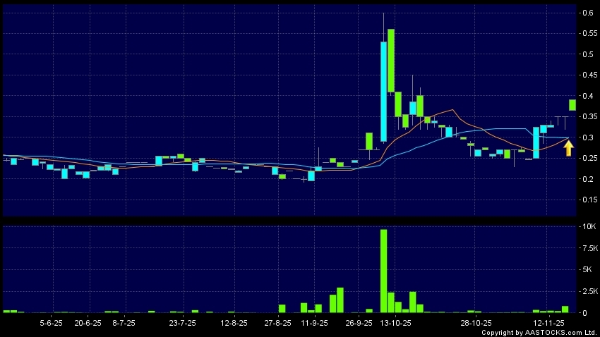 新礦資源(01231.HK) +0.005 (+1.429%) 10天移動平均線升穿20天移動平均線,出現黃金交叉。現價報0.365,上升4.286%,成交量8.00千股,成交額3.09千。