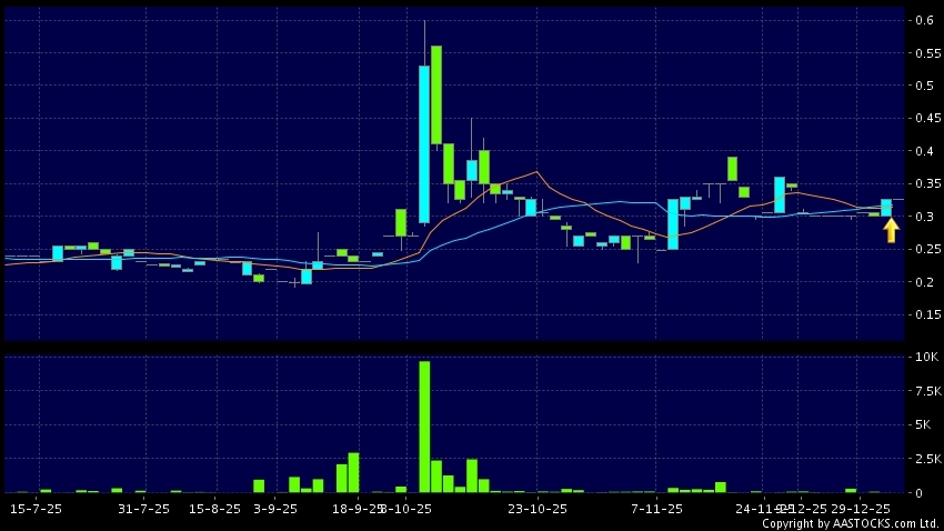 新礦資源(01231.HK) 0.000 (0.000%) 10天移動平均線升穿20天移動平均線,出現黃金交叉。現價報0.325,無升跌,成交量0.00股,成交額0.00。