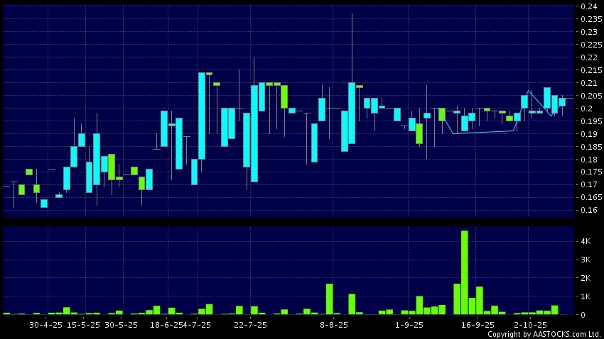 NIRAKU(01245.HK) 0.000 (0.000%) 呈現杯柄形向上突破。現價報0.204,無升跌,成交量0.00股,成交額0.00。
