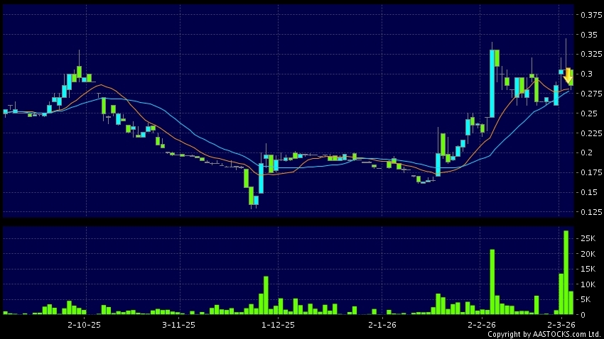 免責聲明:以上金融市場數據、報價、圖表 及/或各種技術分析指標乃根據公開資料分析和演釋自動生成的,僅作參考使用。此類自動生成的內容並不代表AASTOCKS.com Limited的立場。AASTOCKS.com Limited並不保證其準確性、完整性、實時性或者正確性。閣下應諮詢獨立專業意見,以核實定價資料或獲取更詳細的市場信息及須為所有跟隨此類自動生成的內容執行的交易或使用該內容負責。