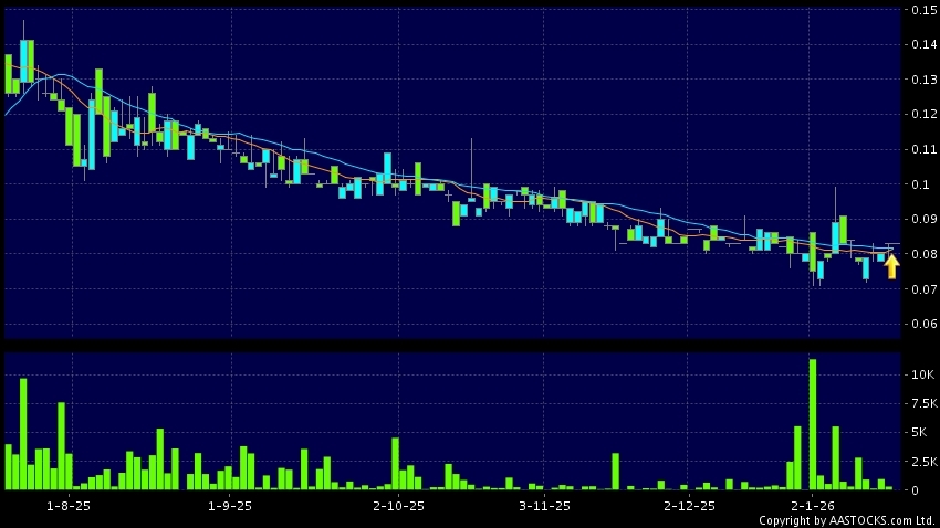 中國新城鎮(01278.HK) +0.005 (+6.098%) 10天移動平均線升穿20天移動平均線,出現黃金交叉。現價報0.083,無升跌,成交量0.00股,成交額0.00。