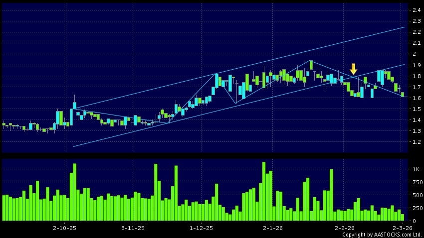區域突破指股價在過去的一段時間只在一個範圍在內活動,然後股價下跌作出突破,跌穿區域的底部,技術走勢偏軟。(港股報價延遲最少十五分鐘。)