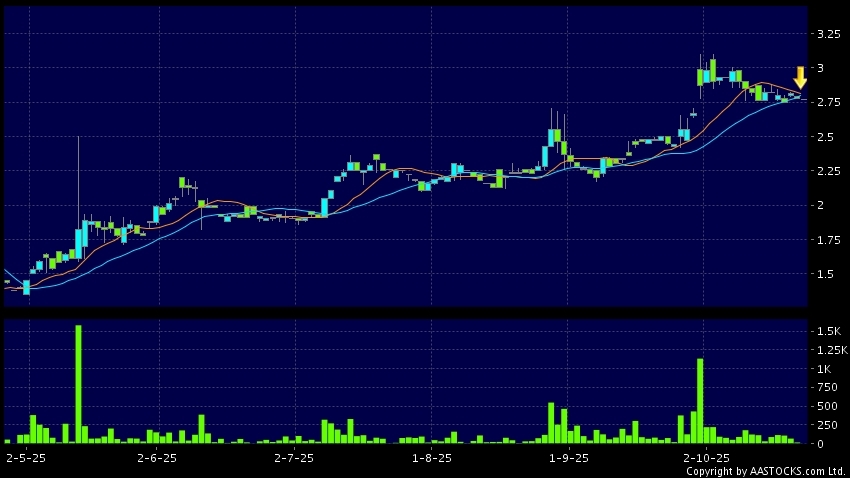 免責聲明:以上金融市場數據、報價、圖表 及/或各種技術分析指標乃根據公開資料分析和演釋自動生成的,僅作參考使用。此類自動生成的內容並不代表AASTOCKS.com Limited的立場。AASTOCKS.com Limited並不保證其準確性、完整性、實時性或者正確性。閣下應諮詢獨立專業意見,以核實定價資料或獲取更詳細的市場信息及須為所有跟隨此類自動生成的內容執行的交易或使用該內容負責。