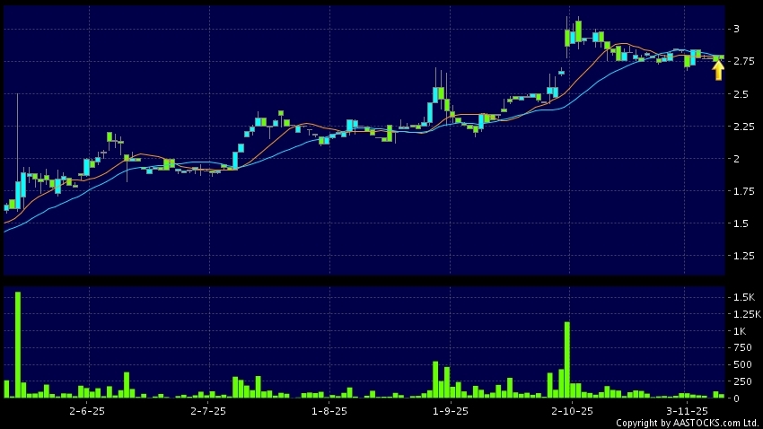 免責聲明:以上金融市場數據、報價、圖表 及/或各種技術分析指標乃根據公開資料分析和演釋自動生成的,僅作參考使用。此類自動生成的內容並不代表AASTOCKS.com Limited的立場。AASTOCKS.com Limited並不保證其準確性、完整性、實時性或者正確性。閣下應諮詢獨立專業意見,以核實定價資料或獲取更詳細的市場信息及須為所有跟隨此類自動生成的內容執行的交易或使用該內容負責。