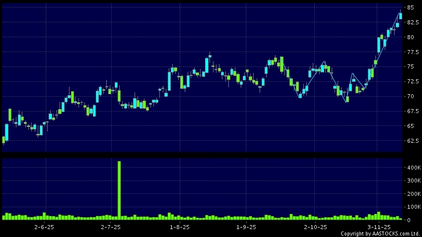 免責聲明:以上金融市場數據、報價、圖表 及/或各種技術分析指標乃根據公開資料分析和演釋自動生成的,僅作參考使用。此類自動生成的內容並不代表AASTOCKS.com Limited的立場。AASTOCKS.com Limited並不保證其準確性、完整性、實時性或者正確性。閣下應諮詢獨立專業意見,以核實定價資料或獲取更詳細的市場信息及須為所有跟隨此類自動生成的內容執行的交易或使用該內容負責。