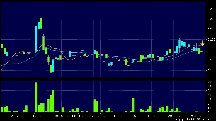 朸濬國際(01355.HK) 0.000 (0.000%) 10天移動平均線跌穿20天移動平均線,出現死亡交叉。現價報0.144,下跌0.690%,成交量0.00股,成交額0.00。