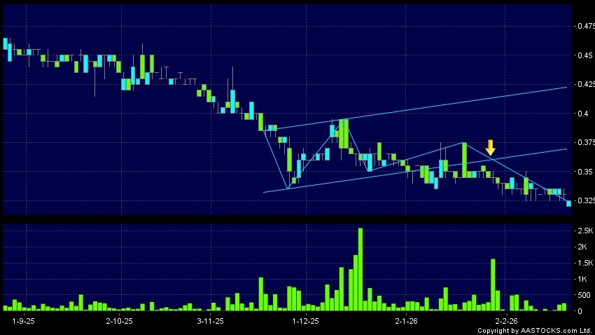 免責聲明:以上金融市場數據、報價、圖表 及/或各種技術分析指標乃根據公開資料分析和演釋自動生成的,僅作參考使用。此類自動生成的內容並不代表AASTOCKS.com Limited的立場。AASTOCKS.com Limited並不保證其準確性、完整性、實時性或者正確性。閣下應諮詢獨立專業意見,以核實定價資料或獲取更詳細的市場信息及須為所有跟隨此類自動生成的內容執行的交易或使用該內容負責。