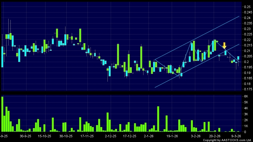 成實外教育(01565.HK) +0.009 (+4.615%) 呈現區域下軌突破。現價報0.200,下跌2.439%,成交量0.00股,成交額0.00。