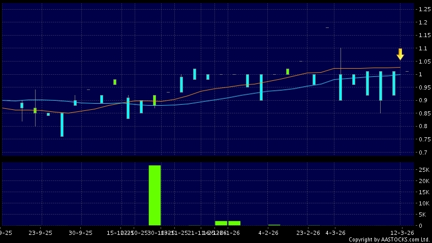匯鑫小貸(01577.HK) 0.000 (0.000%) 10天移動平均線跌穿20天移動平均線,出現死亡交叉。現價報1.010,無升跌,成交量0.00股,成交額0.00。