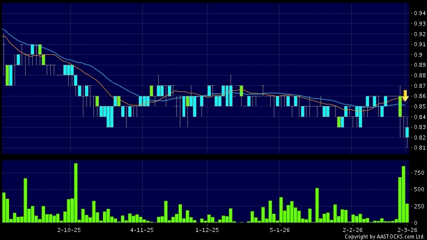 免責聲明:以上金融市場數據、報價、圖表 及/或各種技術分析指標乃根據公開資料分析和演釋自動生成的,僅作參考使用。此類自動生成的內容並不代表AASTOCKS.com Limited的立場。AASTOCKS.com Limited並不保證其準確性、完整性、實時性或者正確性。閣下應諮詢獨立專業意見,以核實定價資料或獲取更詳細的市場信息及須為所有跟隨此類自動生成的內容執行的交易或使用該內容負責。