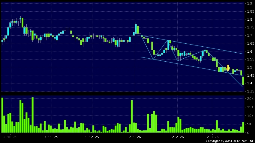 區域突破指股價在過去的一段時間只在一個範圍在內活動,然後股價下跌作出突破,跌穿區域的底部,技術走勢偏軟。(港股報價延遲最少十五分鐘。沽空資料截至 2026-04-01 16:25。)