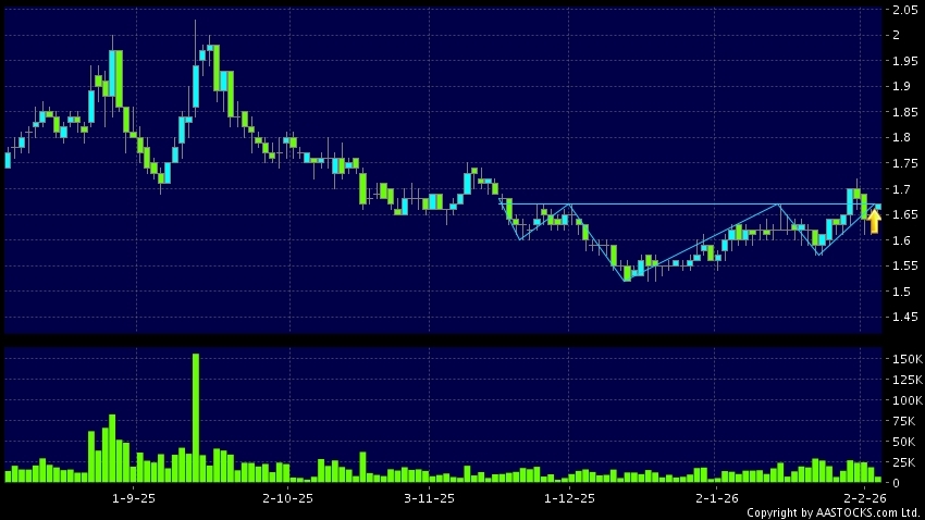 頭肩底是典型的利好訊號,當股價升穿阻力線時,升勢確認股價將持續上升,技術走勢向好。(港股報價延遲最少十五分鐘。沽空資料截至 2026-02-12 16:25。)