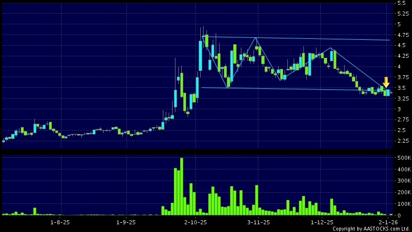 區域突破指股價在過去的一段時間只在一個範圍在內活動,然後股價下跌作出突破,跌穿區域的底部,技術走勢偏軟。(港股報價延遲最少十五分鐘。沽空資料截至 2026-01-09 16:25。)