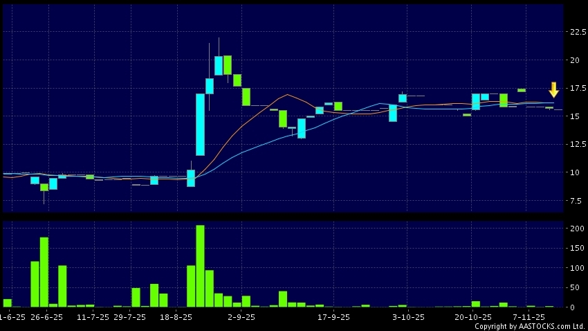 樺欣控股(01657.HK) +0.370 (+2.399%) 10天移動平均線跌穿20天移動平均線,出現死亡交叉。現價報15.580,下跌0.638%,成交量0.00股,成交額0.00。