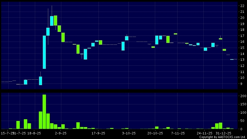 樺欣控股(01657.HK) 0.000 (0.000%) 呈現頭肩頂向下突破。現價報13.090,無升跌,成交量0.00股,成交額0.00。