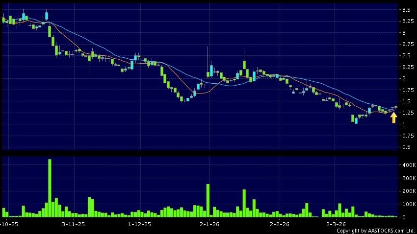 德林控股(01709.HK) -0.020 (-1.639%) 10天移動平均線升穿20天移動平均線,出現黃金交叉。現價報1.360,無升跌,成交量5.67百萬股,成交額7.72百萬。