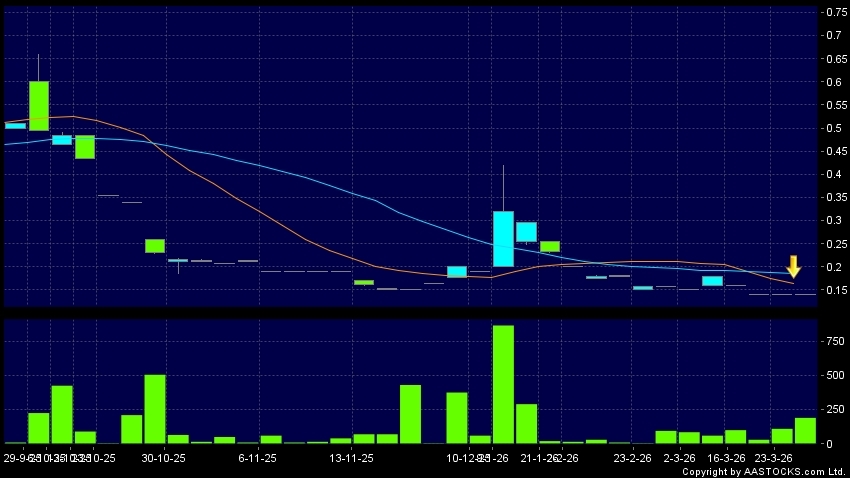 FSM HOLDINGS(01721.HK) 0.000 (0.000%) 10天移動平均線跌穿20天移動平均線,出現死亡交叉。現價報0.140,無升跌,成交量19.00萬股,成交額2.66萬。