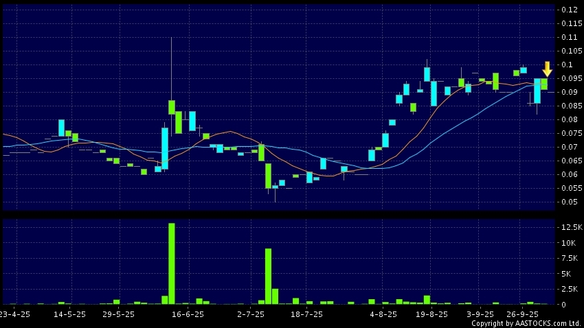 新石文化(01740.HK)  +0.003 (+4.000%)   10天移動平均線跌穿20天移動平均線,出現死亡交叉。現價報0.090,下跌1.099%,成交量0.00股,成交額0.00。