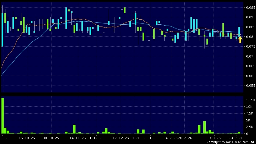 澳洲成峰高教(01752.HK) -0.001 (-1.087%) 10天移動平均線升穿20天移動平均線,出現黃金交叉。現價報0.085,無升跌,成交量0.00股,成交額0.00。