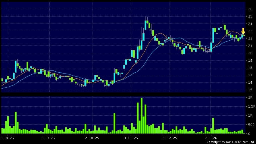 免責聲明:以上金融市場數據、報價、圖表 及/或各種技術分析指標乃根據公開資料分析和演釋自動生成的,僅作參考使用。此類自動生成的內容並不代表AASTOCKS.com Limited的立場。AASTOCKS.com Limited並不保證其準確性、完整性、實時性或者正確性。閣下應諮詢獨立專業意見,以核實定價資料或獲取更詳細的市場信息及須為所有跟隨此類自動生成的內容執行的交易或使用該內容負責。
