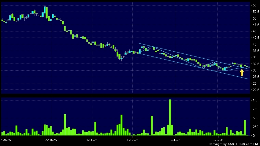 區域突破指股價在過去的一段時間只在一個範圍在內活動,然後股價上升作出突破,升穿區域的頂部,技術走勢向好。(港股報價延遲最少十五分鐘。沽空資料截至 2026-02-27 16:25。)