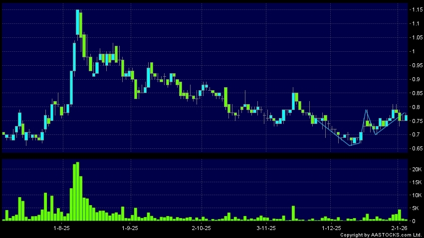 晨鳴紙業(01812.HK) 0.000 (0.000%) 呈現杯柄形向上突破。現價報0.770,上升2.667%,成交量63.60萬股,成交額48.95萬。