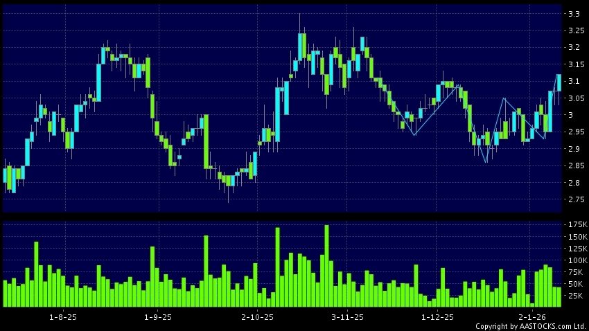 免責聲明:以上金融市場數據、報價、圖表 及/或各種技術分析指標乃根據公開資料分析和演釋自動生成的,僅作參考使用。此類自動生成的內容並不代表AASTOCKS.com Limited的立場。AASTOCKS.com Limited並不保證其準確性、完整性、實時性或者正確性。閣下應諮詢獨立專業意見,以核實定價資料或獲取更詳細的市場信息及須為所有跟隨此類自動生成的內容執行的交易或使用該內容負責。