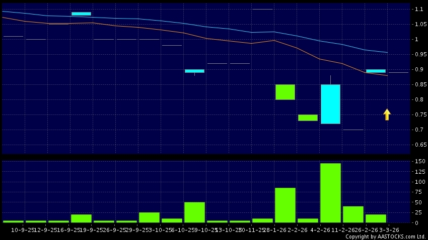 卓珈控股(01827.HK) 0.000 (0.000%) 10天移動平均線升穿20天移動平均線,出現黃金交叉。現價報0.890,無升跌,成交量0.00股,成交額0.00。