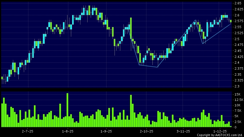 免責聲明:以上金融市場數據、報價、圖表 及/或各種技術分析指標乃根據公開資料分析和演釋自動生成的,僅作參考使用。此類自動生成的內容並不代表AASTOCKS.com Limited的立場。AASTOCKS.com Limited並不保證其準確性、完整性、實時性或者正確性。閣下應諮詢獨立專業意見,以核實定價資料或獲取更詳細的市場信息及須為所有跟隨此類自動生成的內容執行的交易或使用該內容負責。
