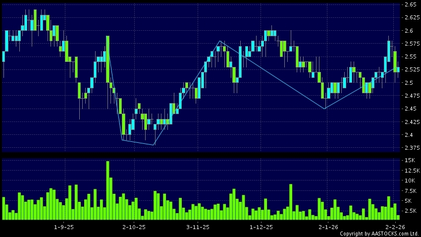 免責聲明:以上金融市場數據、報價、圖表 及/或各種技術分析指標乃根據公開資料分析和演釋自動生成的,僅作參考使用。此類自動生成的內容並不代表AASTOCKS.com Limited的立場。AASTOCKS.com Limited並不保證其準確性、完整性、實時性或者正確性。閣下應諮詢獨立專業意見,以核實定價資料或獲取更詳細的市場信息及須為所有跟隨此類自動生成的內容執行的交易或使用該內容負責。