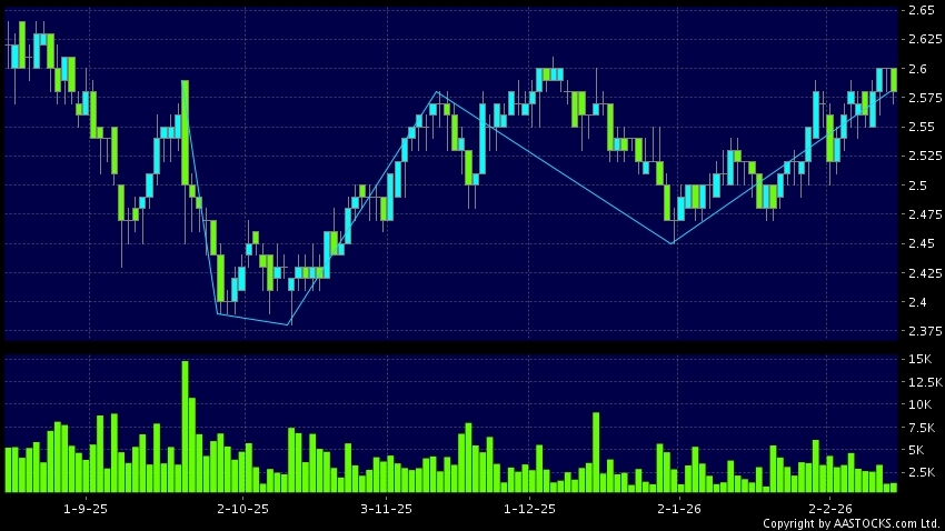 免責聲明:以上金融市場數據、報價、圖表 及/或各種技術分析指標乃根據公開資料分析和演釋自動生成的,僅作參考使用。此類自動生成的內容並不代表AASTOCKS.com Limited的立場。AASTOCKS.com Limited並不保證其準確性、完整性、實時性或者正確性。閣下應諮詢獨立專業意見,以核實定價資料或獲取更詳細的市場信息及須為所有跟隨此類自動生成的內容執行的交易或使用該內容負責。