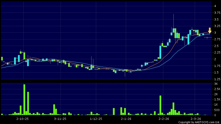 免責聲明:以上金融市場數據、報價、圖表 及/或各種技術分析指標乃根據公開資料分析和演釋自動生成的,僅作參考使用。此類自動生成的內容並不代表AASTOCKS.com Limited的立場。AASTOCKS.com Limited並不保證其準確性、完整性、實時性或者正確性。閣下應諮詢獨立專業意見,以核實定價資料或獲取更詳細的市場信息及須為所有跟隨此類自動生成的內容執行的交易或使用該內容負責。