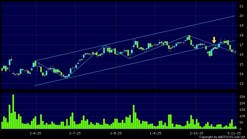 區域突破指股價在過去的一段時間只在一個範圍在內活動,然後股價下跌作出突破,跌穿區域的底部,技術走勢偏軟。(港股報價延遲最少十五分鐘。沽空資料截至 2025-11-06 16:25。)
