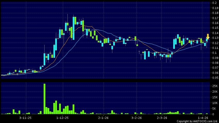 豆盟科技(01917.HK) -0.009 (-7.200%) 10天移動平均線跌穿20天移動平均線,出現死亡交叉。現價報0.126,下跌2.326%,成交量4.00萬股,成交額5.04千。