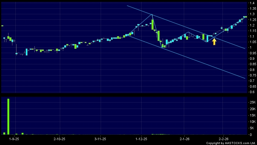 區域突破指股價在過去的一段時間只在一個範圍在內活動,然後股價上升作出突破,升穿區域的頂部,技術走勢向好。(港股報價延遲最少十五分鐘。)