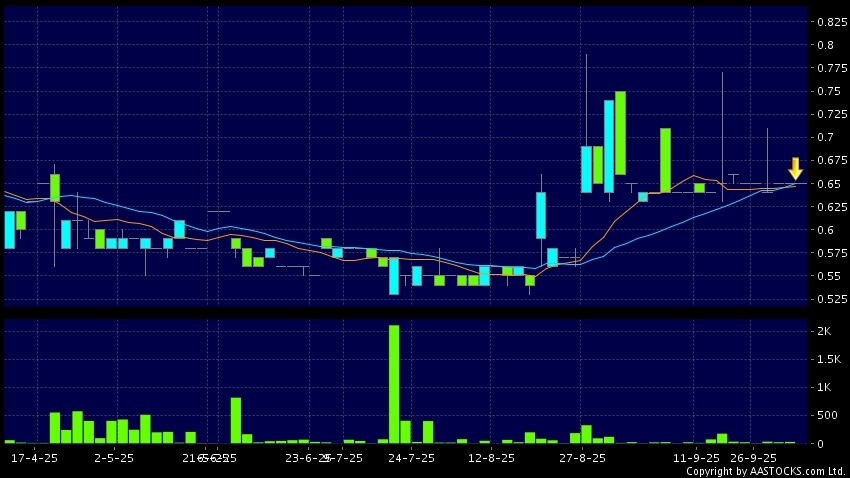 利特米(01936.HK) 0.000 (0.000%) 10天移動平均線跌穿20天移動平均線,出現死亡交叉。現價報0.650,無升跌,成交量0.00股,成交額0.00。